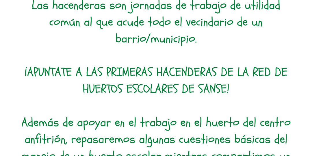Este año tenemos como novedad las HACENDERAS: jornadas de trabajo de utilidad común al que acude todo el vecindario de un barrio/municipio, habituales en muchos lugares de las Castillas, Asturias y otros lugares de España. Reciben diferentes nombres: peonadas, obrerizas o auzolan en euskera (“trabajo colectivo”).